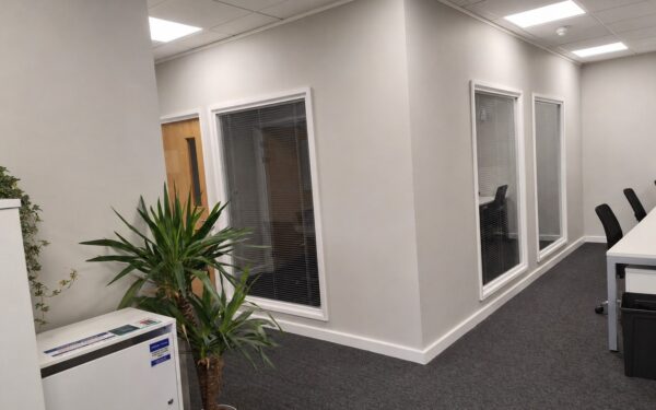 The suite has been thoughtfully configured to provide a strong balance between collaborative and private space. At its heart is a spacious open plan office area, ideal for team working, desks or project space. In addition, the suite benefits from a dedicated meeting room, perfect for client presentations, board meetings or video conferencing, alongside a separate private office suited to directors, management or focused work.